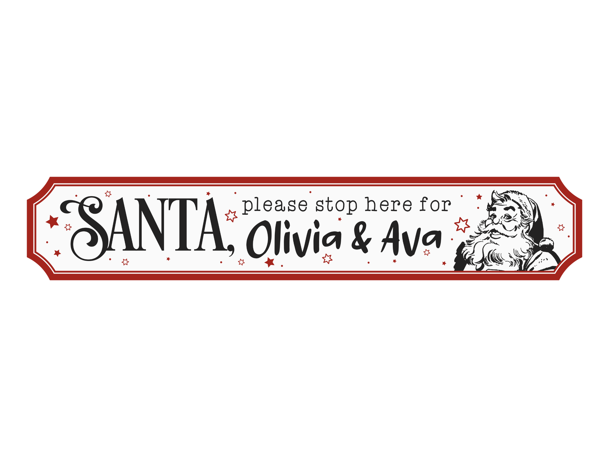 Bring a little extra magic into your home this christmas with this festive wooden sign, beautifully designed with the phrase "Santa Stop Here Please". Featuring a cheery illustration of Santa Claus with a red border. Perfect for the mantel, in the kid's bedroom or mounted on the wall to get your family in the christmas spirit.